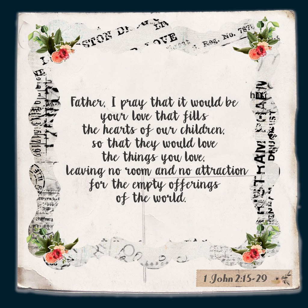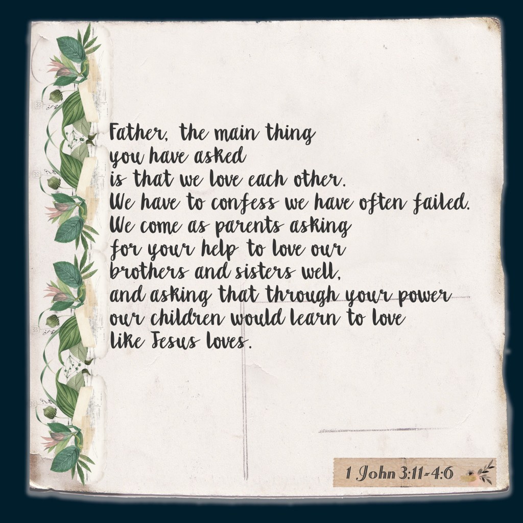 It’s the little things that trip us all up, though. As I read this section in 1 John (3:1-11) it hits me again and again. My last prayer was that we would love our brothers and sisters like Jesus does. And that is the foundation of our calling, isn’t it?